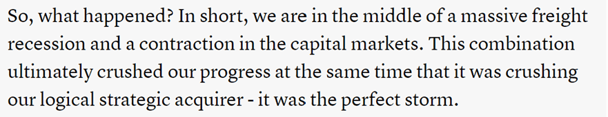 From Dan Lewis’s message to employees, it becomes evident that the company attributed its closure to the decline in freight demand and the contraction of the capital markets.