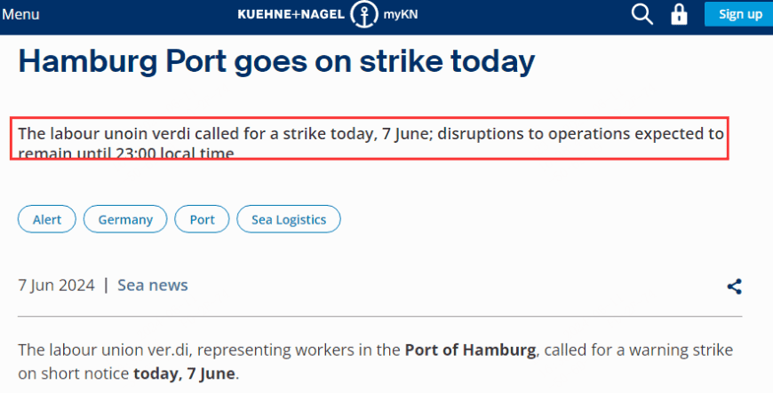 According to foreign media reports, on June 7, local time, container terminal workers in Hamburg launched a warning strike, causing terminal operations to halt. The union representing Hamburg port workers, Verdi, stated that the second round of negotiations with German port operators for higher wages did not achieve results on Thursday. “The offer made by employers is completely inadequate,” said a Verdi negotiator. To pressure for better compensation, the union called for dockworkers to strike at the Hamburg port, stopping work from 5:30 am on the 7th until midnight. According to the union, about 6,000 employees at the Hamburg port are affected by the collective bargaining. Among other things, the union demands a 3-euro per hour wage increase from June 1 and corresponding increases in shift allowances.