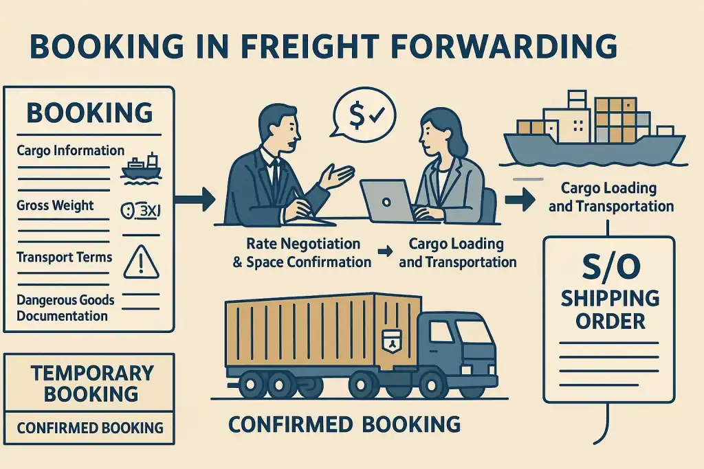 In freight forwarding, a Booking refers to a booking request or a letter of authorization. It is the process where the consignor or their agent requests cargo transportation from the carrier (e.g., shipping companies) in order to reserve space in a container and receive a commitment for loading the cargo. Booking Content: A booking typically […]
